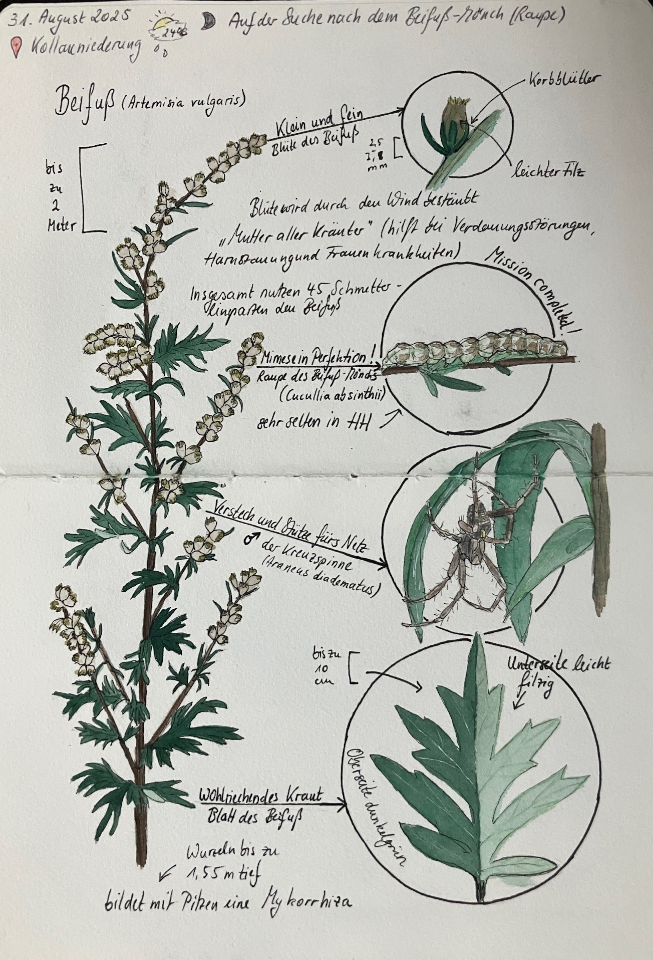Doch was ist Nature Journaling überhaupt? Es ist eine kreative Methode, um die Natur zu erleben und Eindrücke in einem Notizbuch, dem sogenannten Naturjournal, festzuhalten. Dies kann in Form von Beschreibungen der Beobachtungen und dem Notieren von Gedanken und Gefühlen erfolgen. Dabei sind nicht nur Texte, sondern auch Zahlen, Skizzen, Fotos oder gesammelte Naturmaterialien möglich. Den Anfang macht das aufmerksame Wahrnehmen der Natur mit allen Sinnen, gerne vor dem Hintergrund spezieller Fragestellungen. Ein Beispiel: Was passiert, wenn Pilze im Herbst bei einem kräftigen Regenguss nass werden? Ändern sie ihre Farbe oder ihren Geruch? Werden sie weich? Diese und weitere Fragen können im Naturjournal kreativ zu Papier gebracht werden. Bei vielen Menschen führt diese intensive Beschäftigung mit der Natur und somit die Beobachtung von Tieren, Pflanzen, Pilzen und Naturphänomenen zu einer vertieften Beziehung zu unserer Umwelt. Darüber hinaus schärft Nature Journaling den Blick für Details und wirkt zugleich entschleunigend.